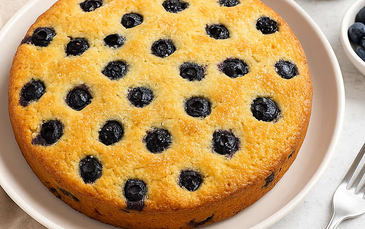 2. Grease a 9" cake pan with butter and dust with 1.5 tbsp cornmeal.
